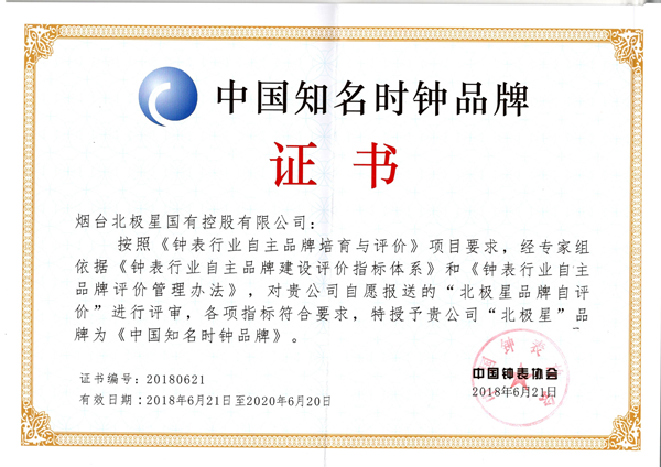 2019年6月21日,在在中國鐘表協(xié)會第八屆七次常務(wù)理事會上,煙臺北極星國有控股有限公司榮獲“中國輕工業(yè)鐘表行業(yè)十強(qiáng)企業(yè)”和“中國知名時鐘品牌”兩項榮譽(yù)。